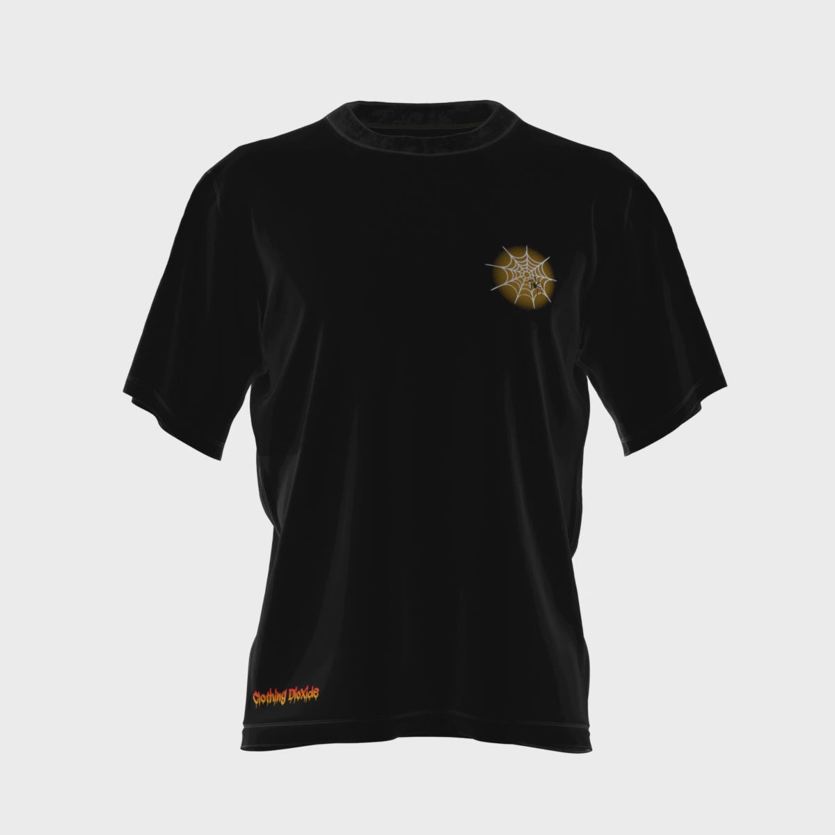 The Flaming Skull Tee. It's a simple as that but we added some 'dark' details for extra impact. This is a high contrast design and the front and back graphics are connected by that detail ... 🕷️