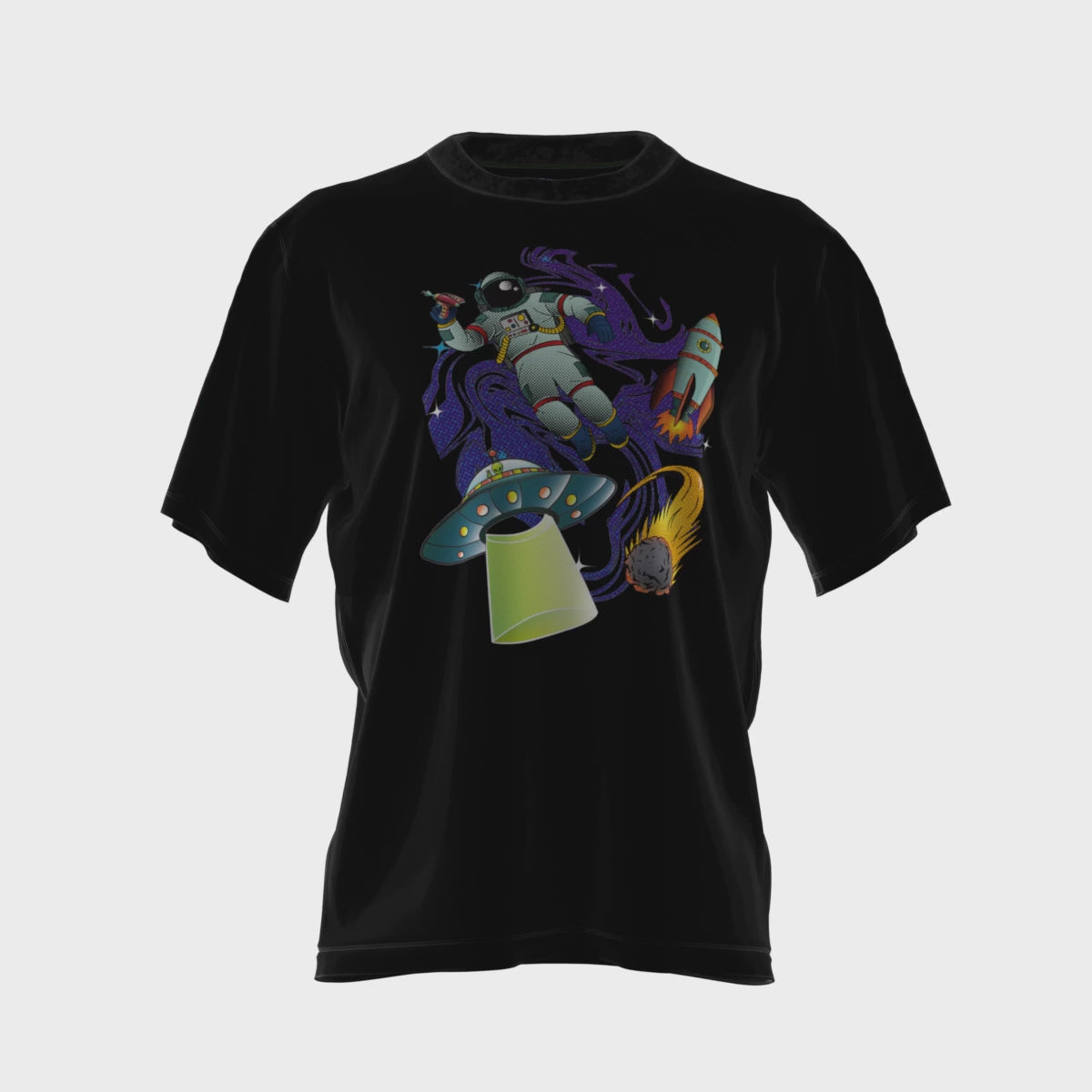 The Space Scene Tee throws you straight into space mayhem; rockets, UFOs, meteors, and a lone astronaut floating through the madness. This front graphic tee is pure interstellar drip.