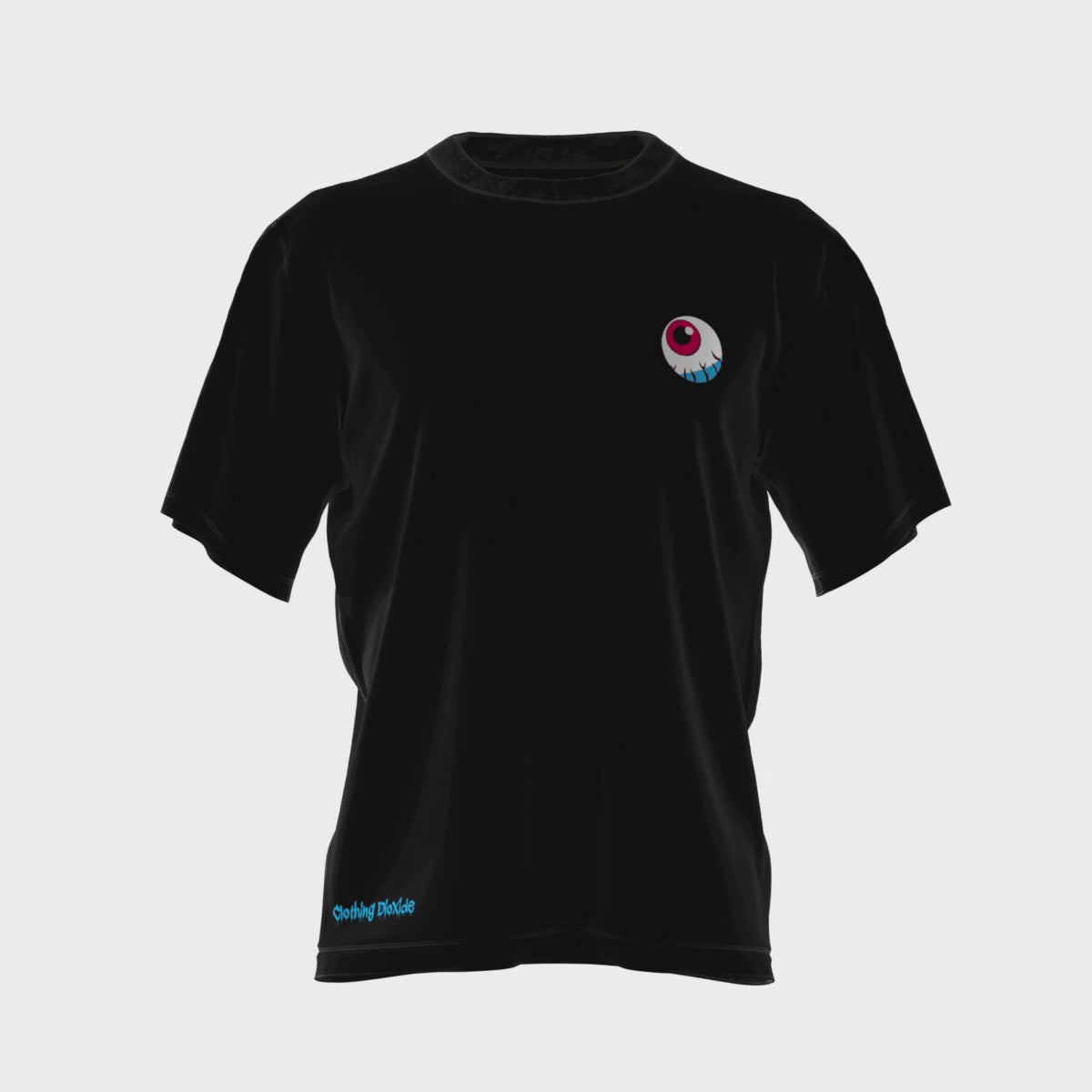 Large back print, front eyeball detail and sleeve logo.